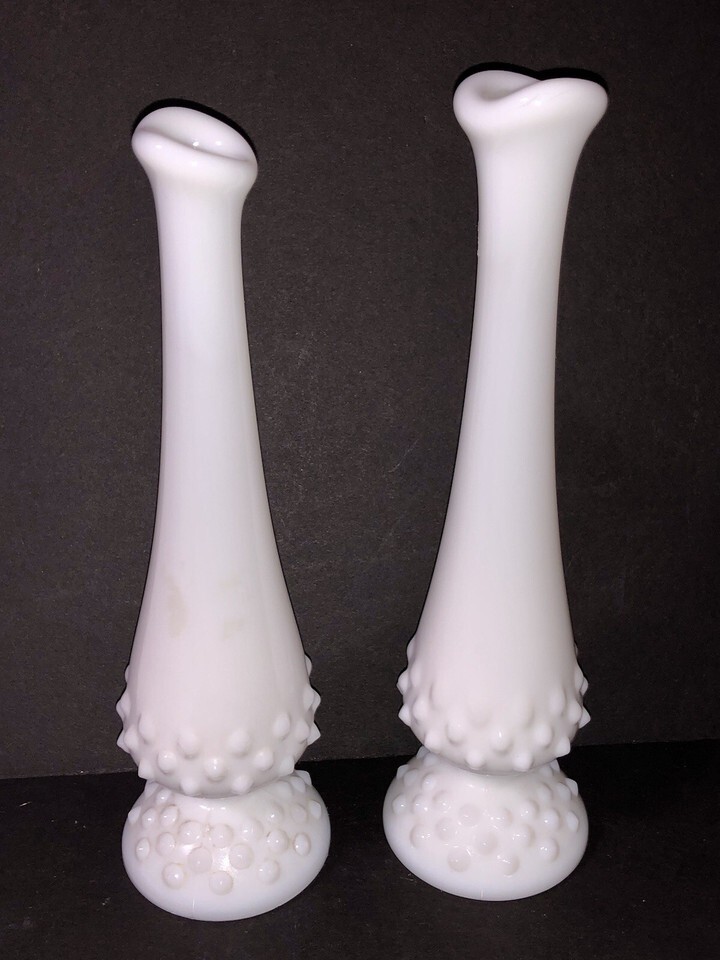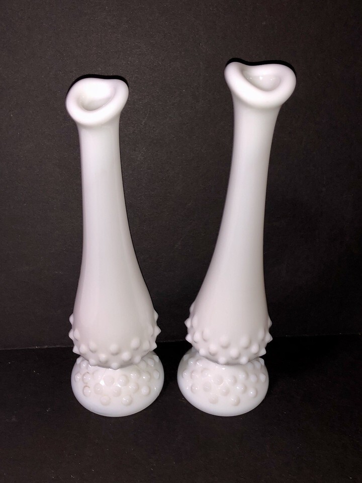 Vintage Set Of 2 Fenton Bud Vases White Milk and 50 similar items