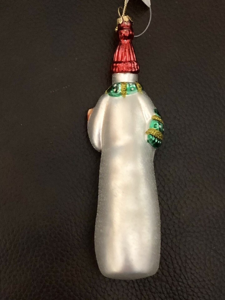 Add a charming touch to your Christmas decor with this hand-painted glass snowman ornament from Kohl's, dating back to the 90?s. The delightful piece features a snowman adorned with a wreath and red hat, complete with a vibrant green scarf, bringing a festive and timeless appeal to your holiday celebrations.