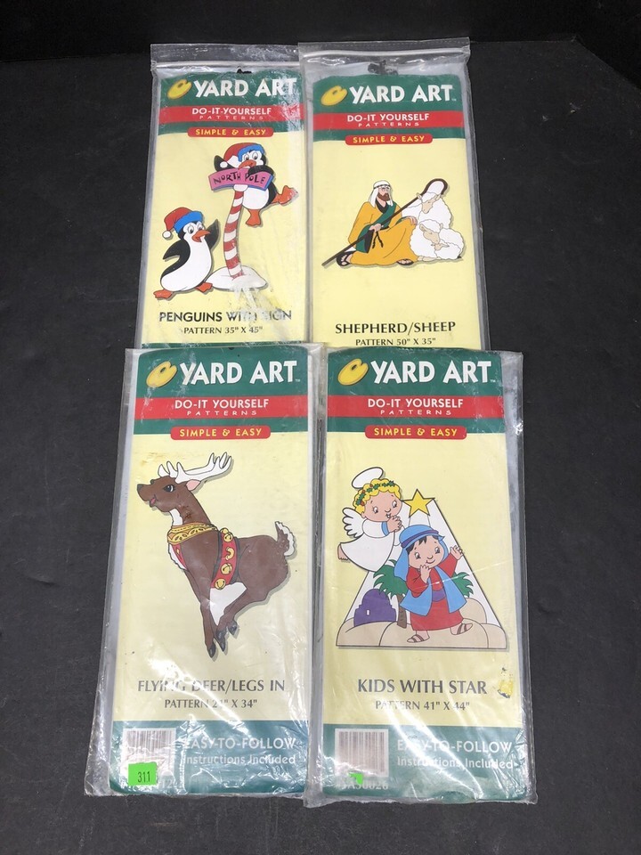 The product is a lot of 4 vintage Yard Art Do-It-Yourself patterns for creating Christmas reindeer and Nativity scenes. These patterns offer a fun and creative way to decorate your yard with festive holiday designs. The vintage style adds a nostalgic touch to your outdoor decor, allowing you to showcase your crafting skills during the holiday season.