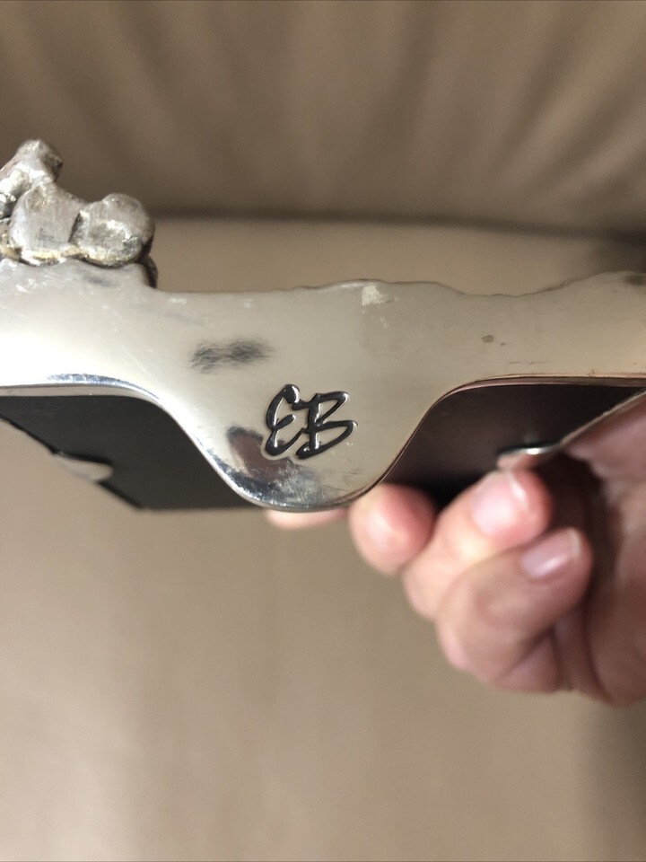 Vintage Pewter Picture Frame Teddy Bears Flowers Signed EB 2.5”x3”Photo 3D Heavy