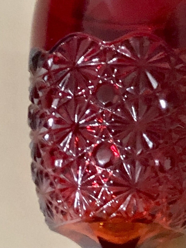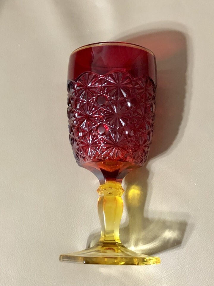 Vintage L.E. Smith Daisy And Button Amberina 6.5” Water Wine Goblet Red Orange