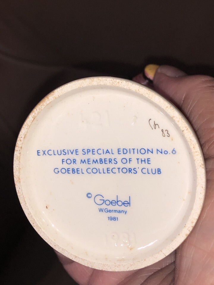 The figurine is signed and comes from a collection of Hummel and Goebel figurines. It is an original piece and was made in Germany. The figurine is perfect for collectors of decorative sculptures and figurines, and would make a great addition to any home decor.