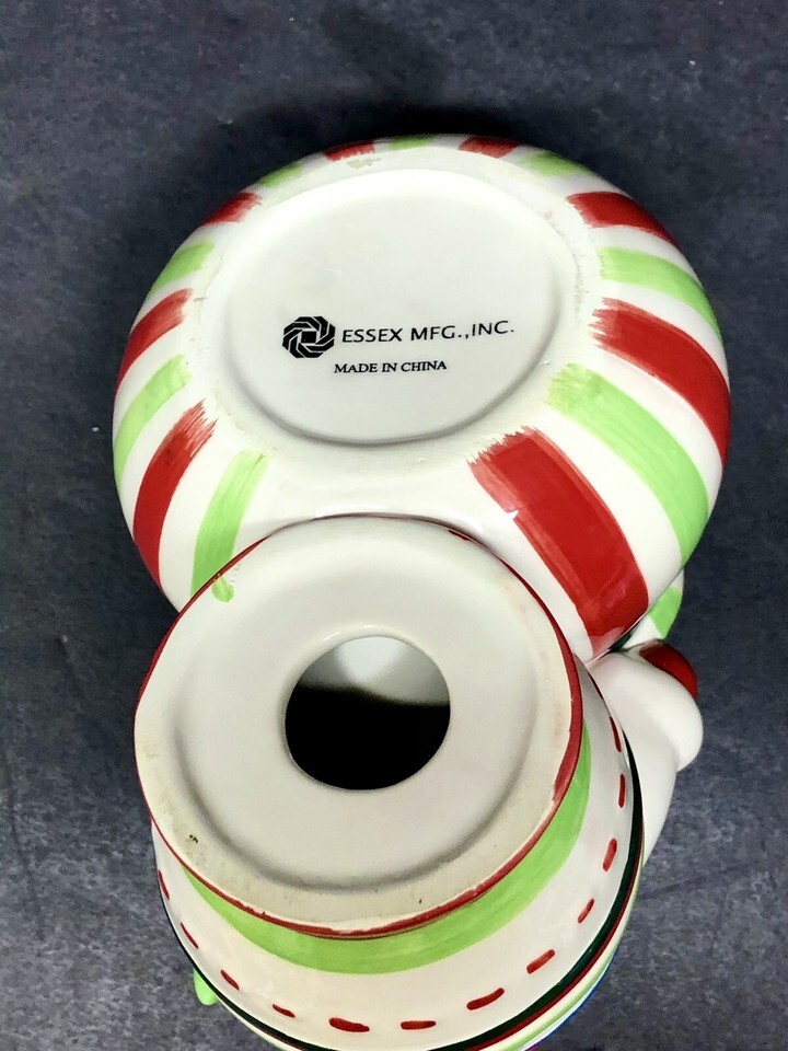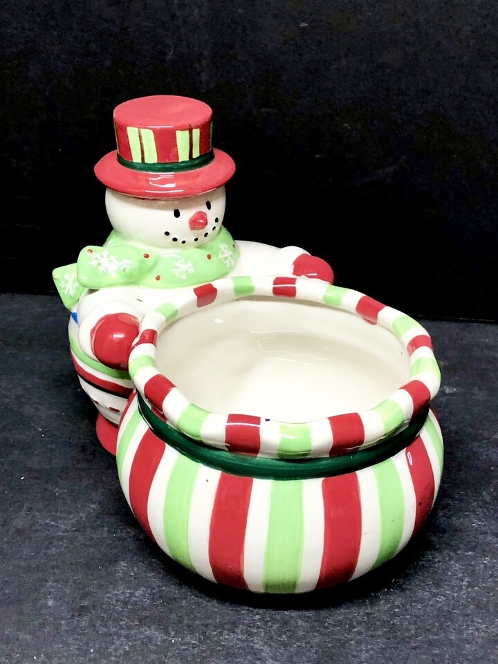 Essex Snowman Ceramic Candy Dish Bowl Holiday Christmas Candle Holder Planter