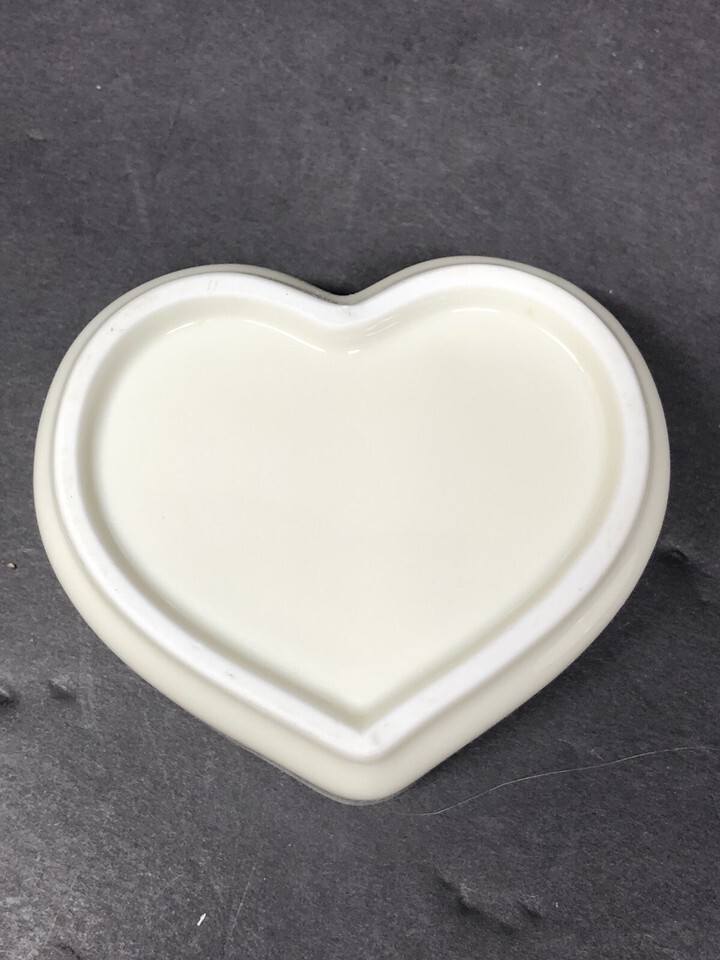 Vintage Cho Cho San Francisco Heart Shaped TRINKET BOX Butterfly Flowers Cream
