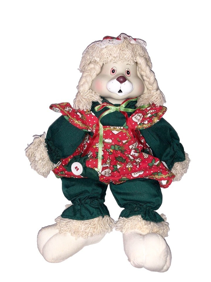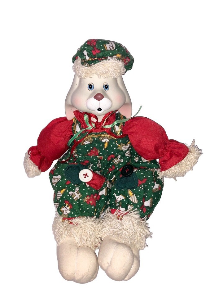 The 1995 Lloyd Christmas "Hip Hop" Bunny Shelf Sitters are a festive set of medium-sized figurines perfect for Christmas decor. Made from a mix of ceramic, porcelain, and cotton materials, these red, green, and white bunnies are painted in a country style inspired by the holiday season. The collectible figures come in a set of 2, each standing at 10 inches tall, and are from the Christmas Around The World collection by House of Lloyd. These original holiday bunnies are a charming addition to any farmhouse decor or seasonal display.