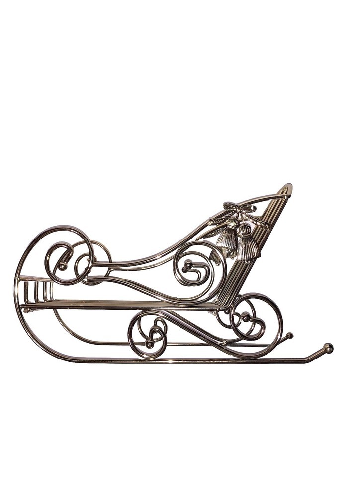 CHRISTMAS SLEIGH Vintage Home Interiors Gold Metal Holiday CENTERPIECE decoré