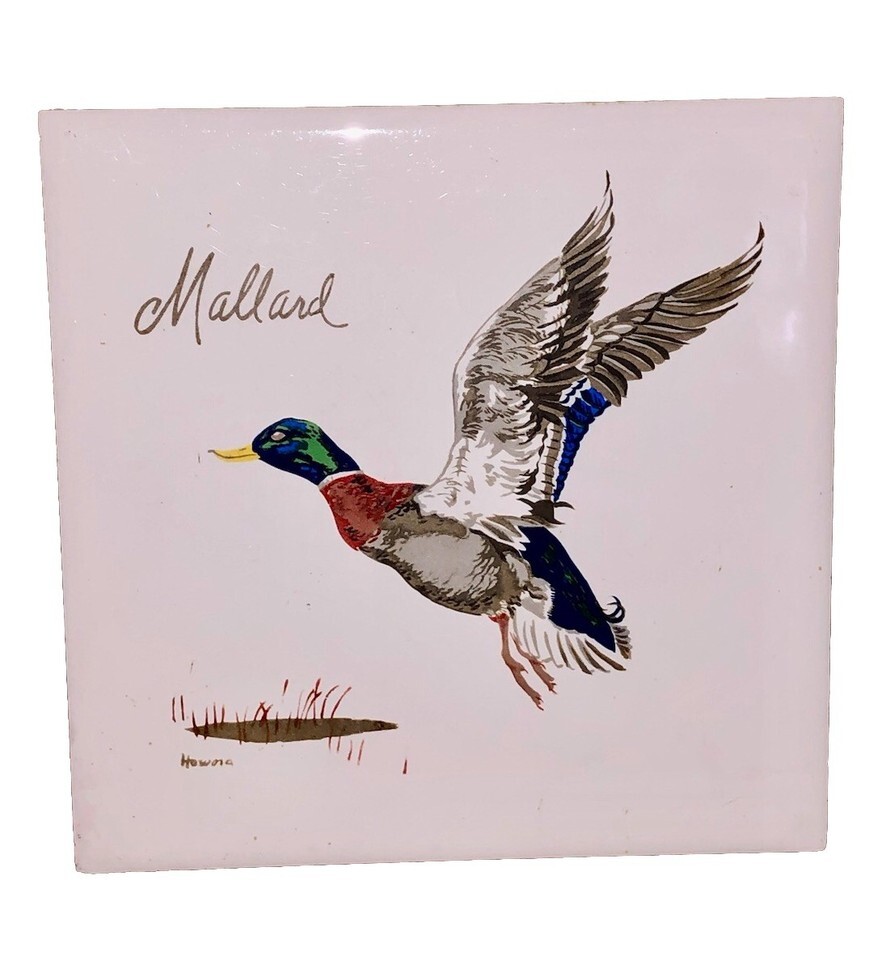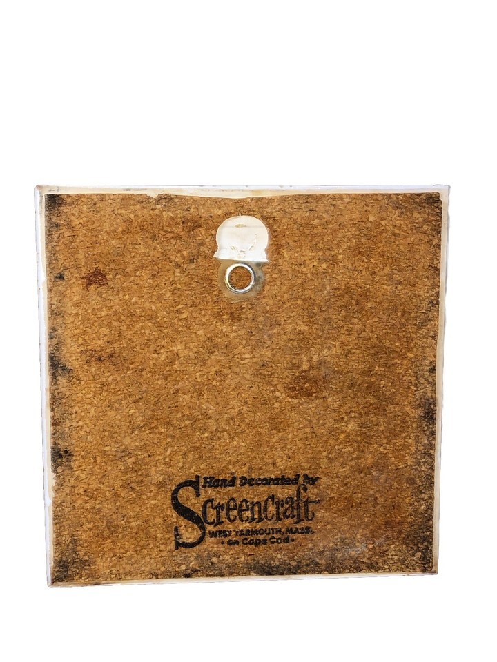 This vintage ceramic tile 6" trivet features a mallard duck design, perfect for wildlife and animal lovers. Signed by the brand Screencraft from West Yarmouth, Cape Cod, Massachusetts, this colorful and glossy tile is a unique and original decorative collectible. The square shape and 6" size make it suitable for all occasions and can be displayed as a standalone piece or as a functional trivet. Made in the United States, this piece adds a touch of charm to any collection or home decor.