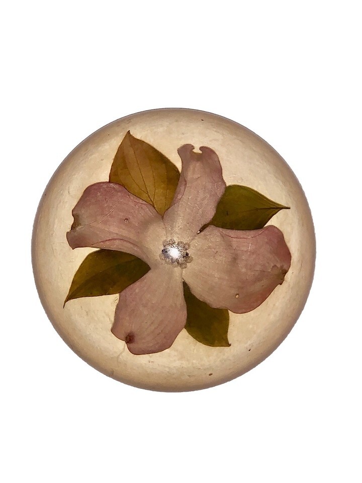 Vintage Paperweight Handblown Glass Resin? Pink Dogwood Tree Flower 4” Leaves