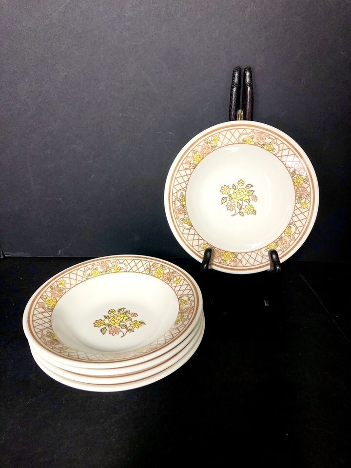 5 VTG Royal China Americana Tiffany Pottery Dessert Berry Bowls Rose USA
