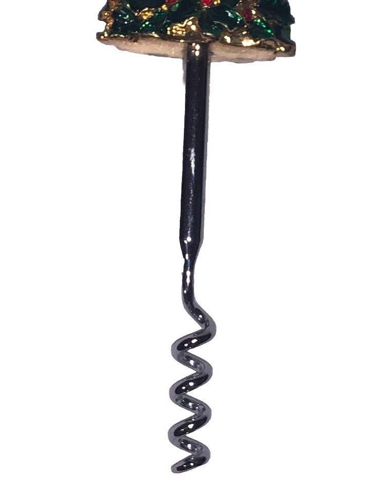 The Bombay Enameled Jeweled Holiday Double Candy Cane Holly yellow bow faux diamonds bling Wine Bottle Corkscrew is a festive and decorative addition to any kitchen or dining room. Standing at 6.5 inches tall, this multicolored twister corkscrew features a handle for easy gripping. Made of enamel and metal, this corkscrew adds a touch of holiday cheer to your bar tools collection. Its unique design and vibrant colors make it a standout piece for any wine enthusiast. Very heavy duty.