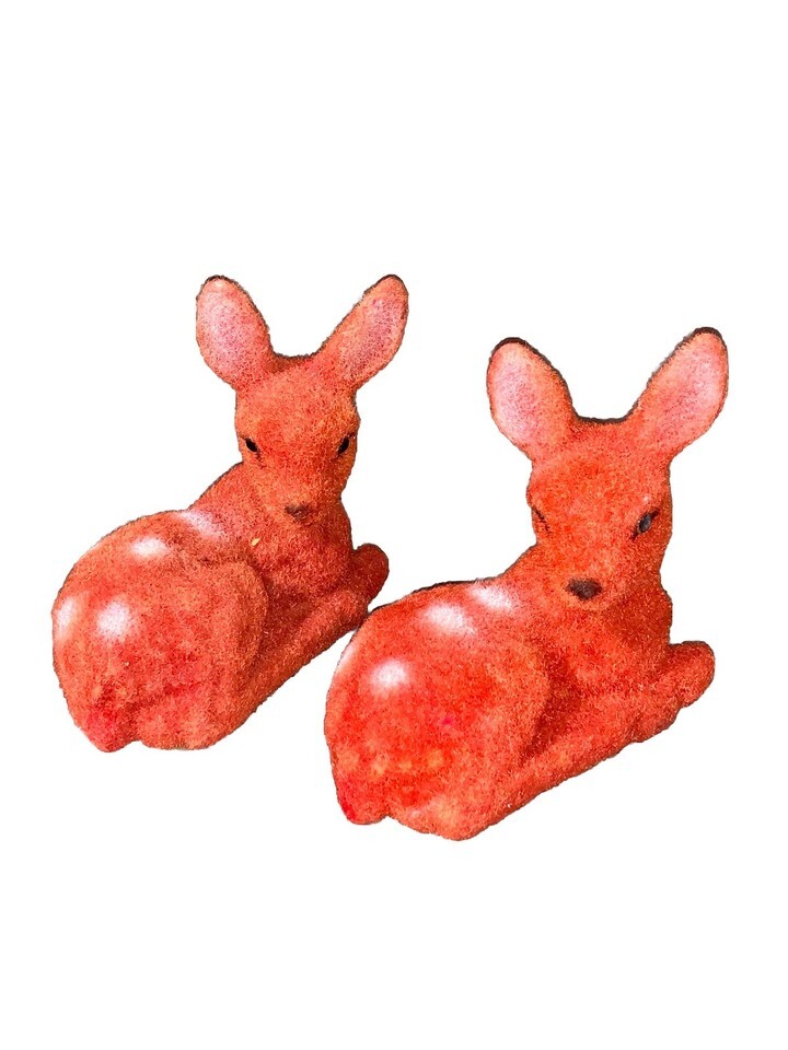 Vintage Set of 2 Fuzzy Flocked Deer Fawn and similar items