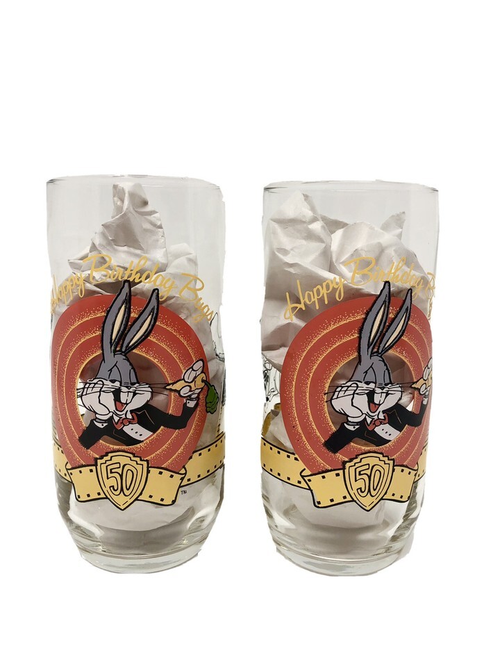 1990 Vintage "Bugs Bunny 50th Happy Birthday" Glasses Looney Tunes Warner Bros 2