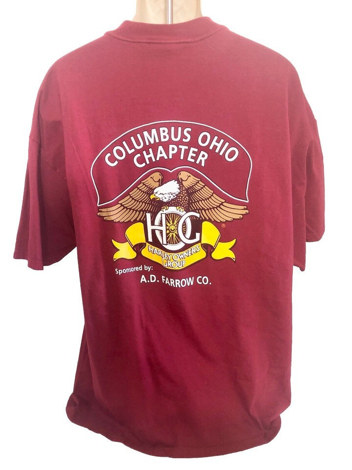 Harley Davidson Owners Group Columbus Ohio 2XL T-Shirt Burgundy Eagle Hog Bike
