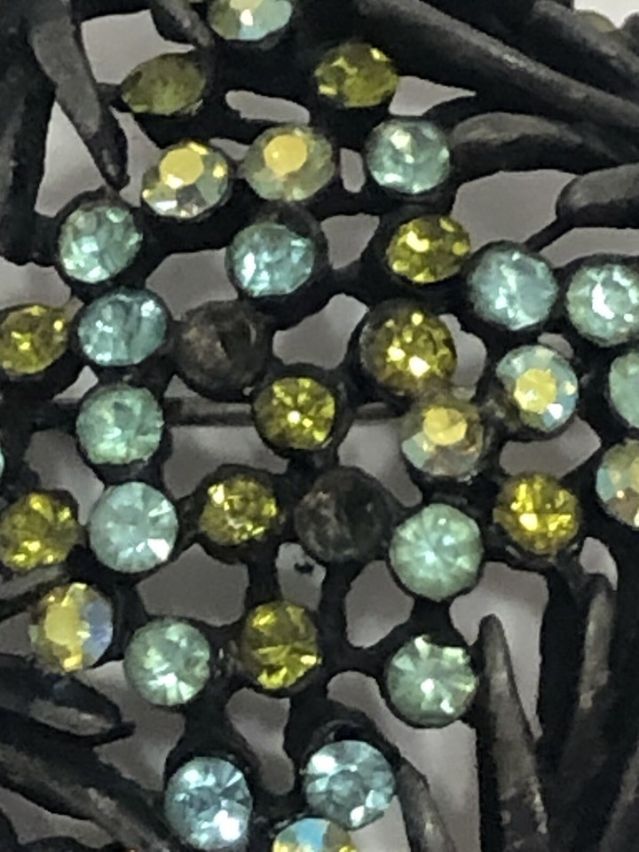 Vintage Dark Bronze Tone Square Faux Blue Green Rhinestones Brooch Pin 1 3/4”
