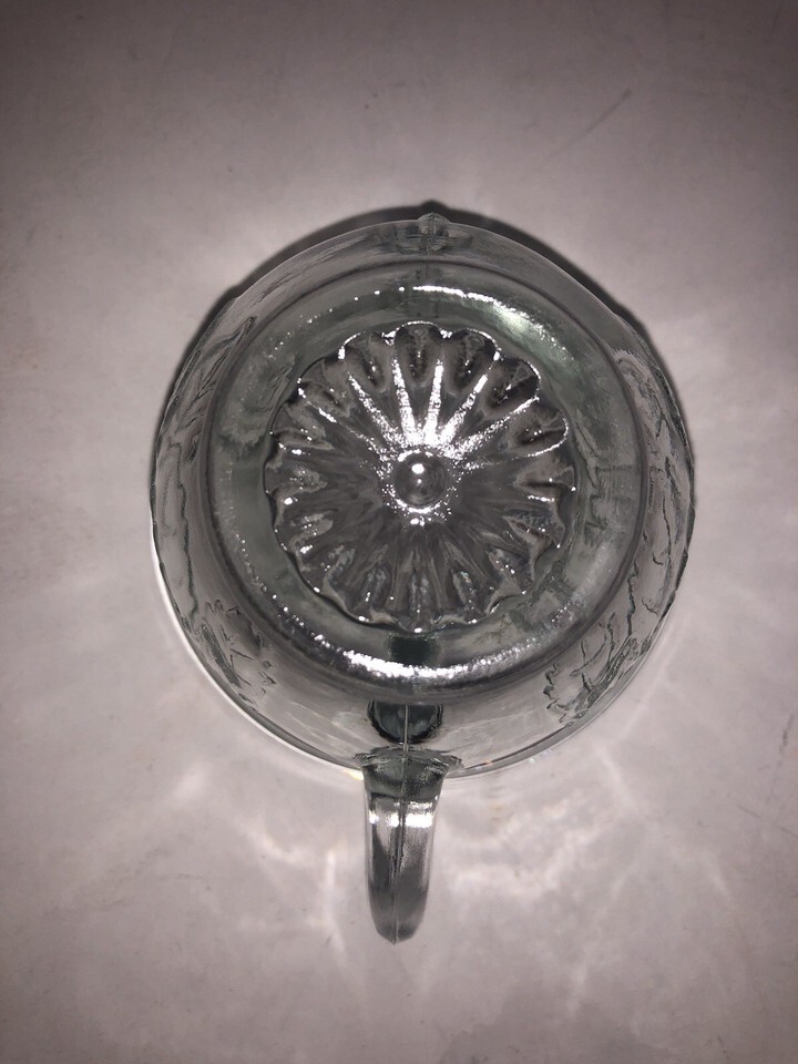 The product is a set of 10 vintage clear Indiana glass punch tea coffee cups featuring a grape harvest pattern. Made in the United States in the 1970s, these cups are pressed glass with a diameter of 3.5 inches and a height of 2.5 inches. The elegant design, featuring grapes and leaves, makes them suitable for various occasions, including parties and everyday use. These original cups from the Indiana Glass brand are a perfect addition to any home bar or drinkware collection, adding a touch of nostalgia to your table setting.