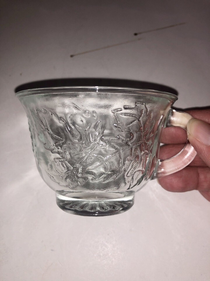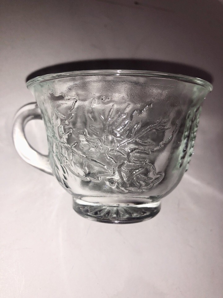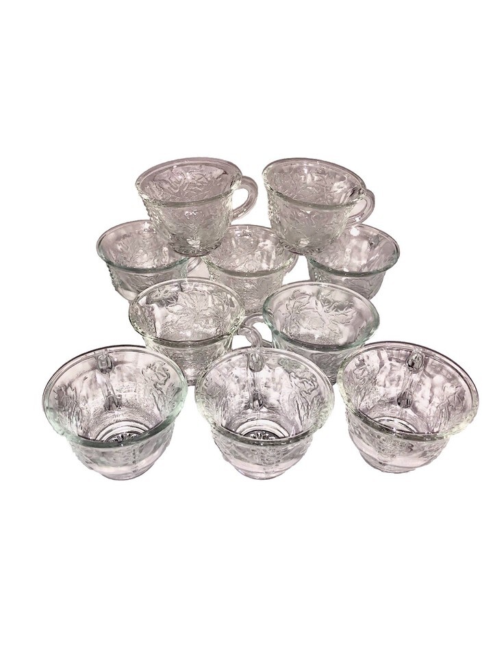 10 Vintage Clear Indiana Glass Grape Harvest Pattern Punch Tea Coffee Cups 2.5”
