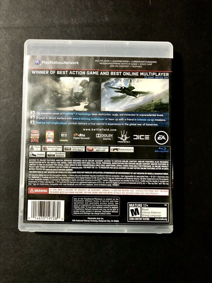 Battlefield 3 PS3 Sony PlayStation 3 Mature 17+ 2011 Video Game No Manual