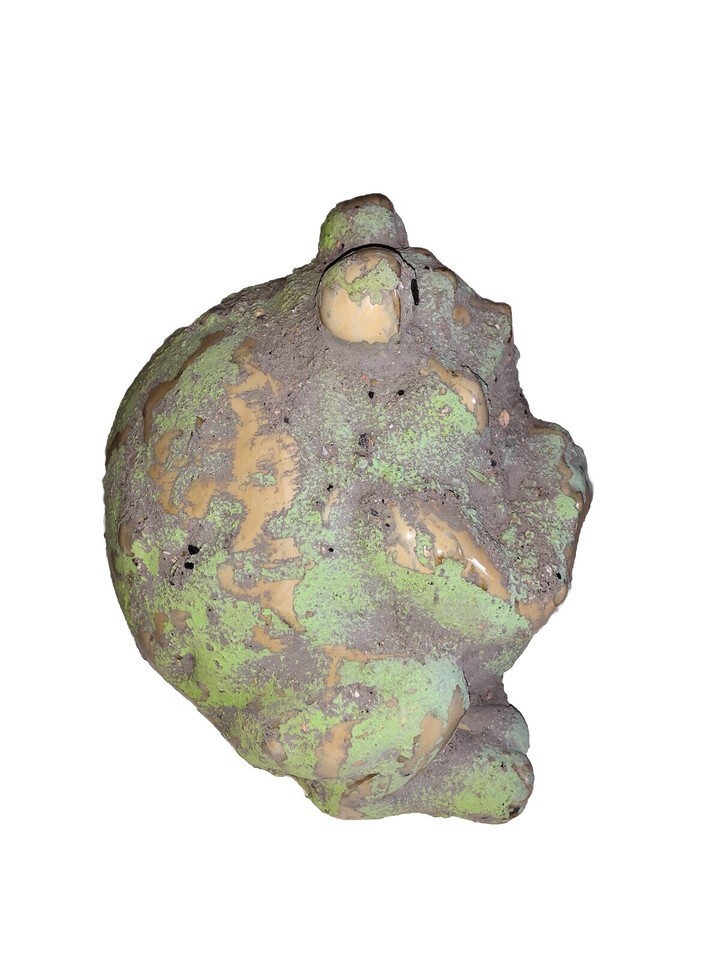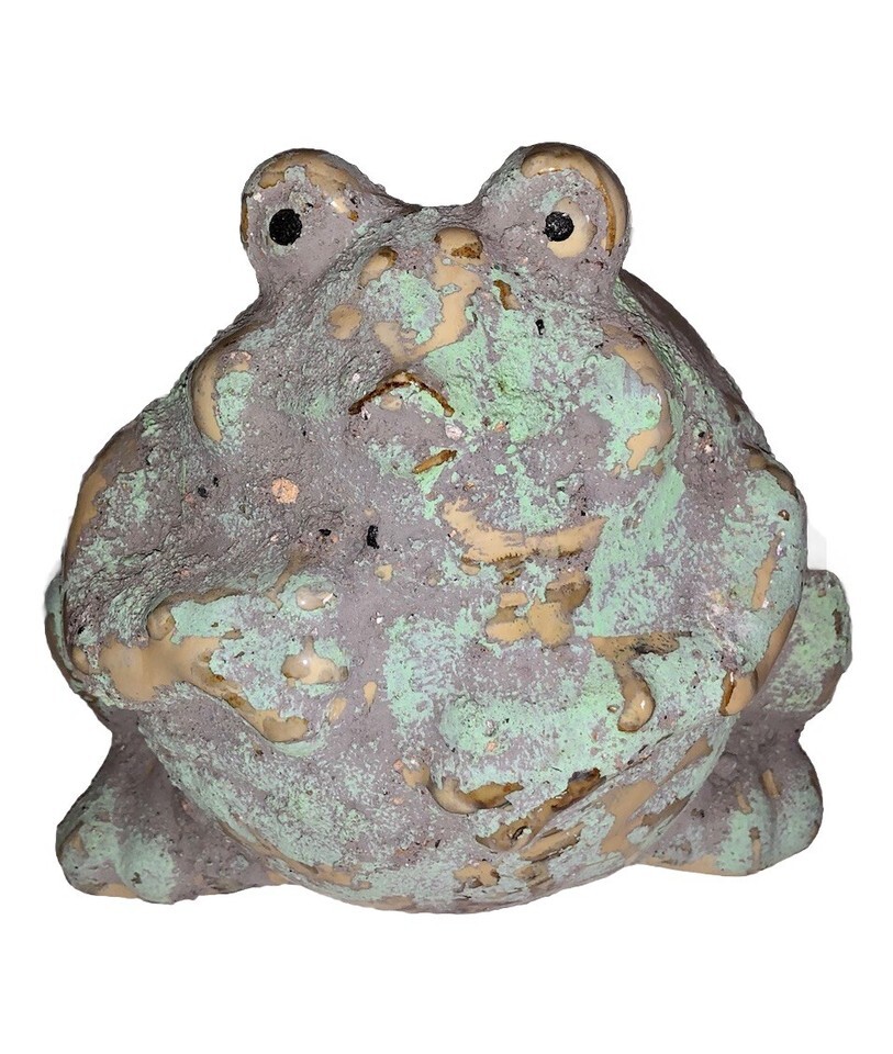 Vintage Ornamental Green Mossy Fat Belly Frog Figurine Pottery Ceramic Toad