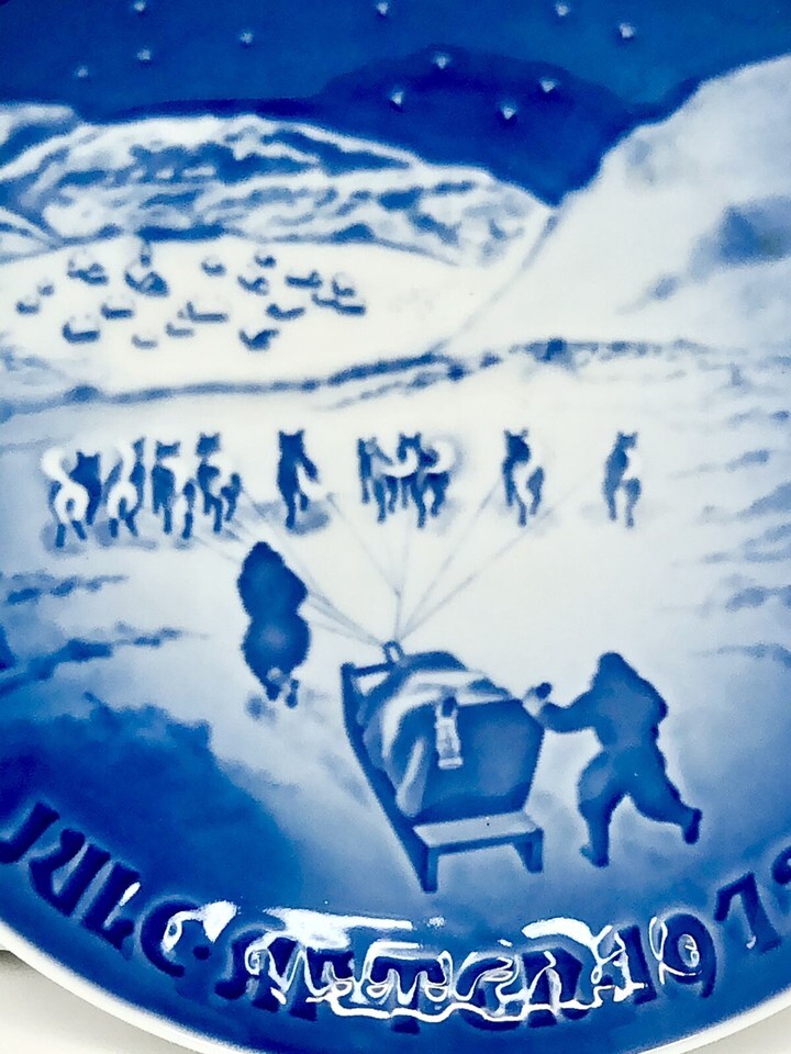 B G Copenhagen Denmark 1972 Blue White Christmas in Greenland Porcelain Collector Plate. Vintage.