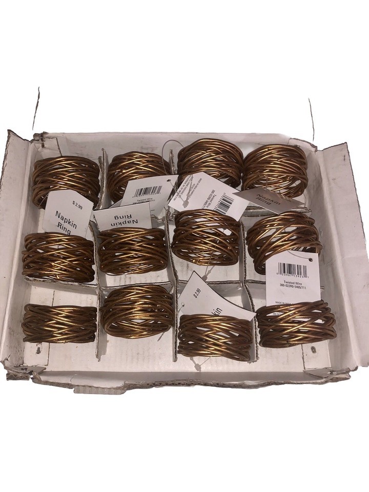 Vintage Mid Century Brass Colored Twisted Wire Napkin Rings Set of 12 NEW