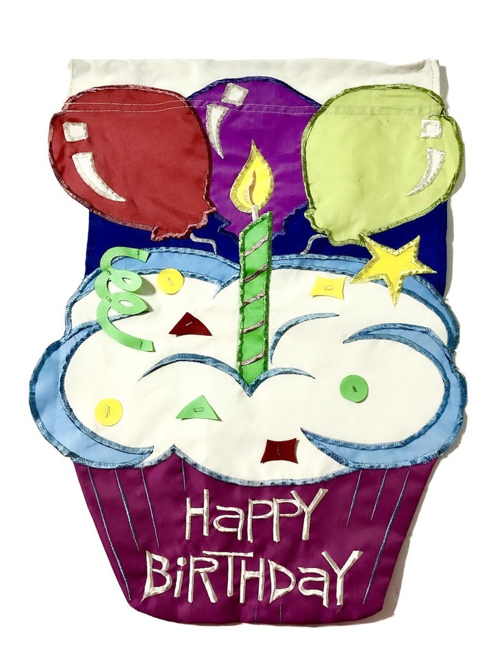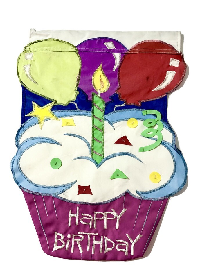 BALLOONS CUPCAKE CANDLE Yard Garden Flag Happy Birthday Confetti Decor Party