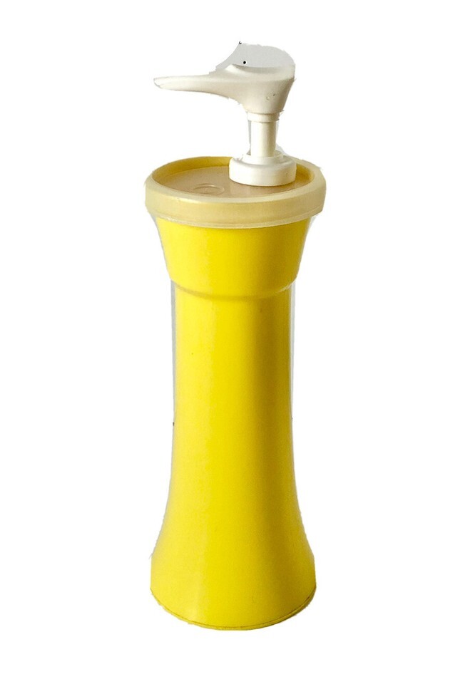 Vintage Tupperware Mustard Pump Dispenser 718-12 Yellow W/ Snap Lid (Very Nice).