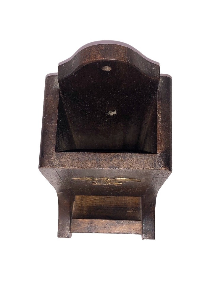 Vtg Wooden Wall Mounted Hanging Long Match Box Holder Fireplace Brass Eagle