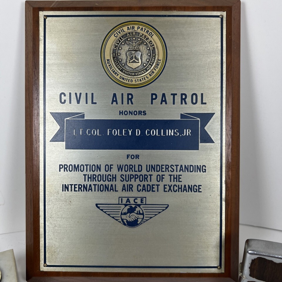 Civil Air Patrol Plaque Paperwork Zippo Lt. Col Foley D Collins Jr WWII Veteran