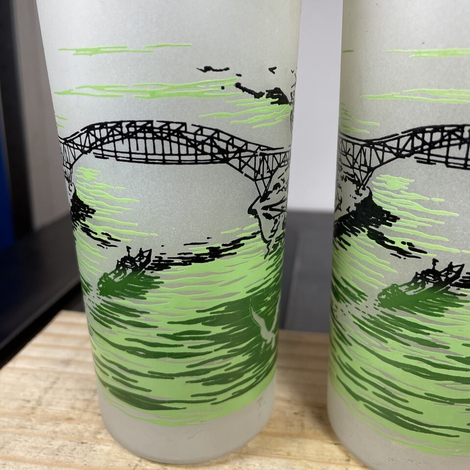 Vtg drinking glasses tumblers Texas Highest Bridge Corpus Christi 1959 6 1/2”