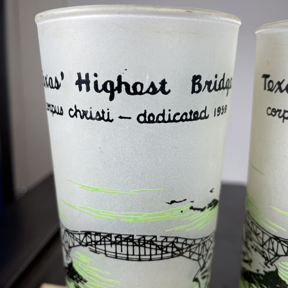 Vtg drinking glasses tumblers Texas Highest Bridge Corpus Christi 1959 6 1/2?.