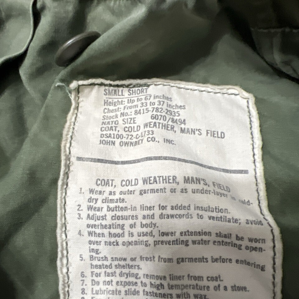 M-65 Army Sateen Green OG-107 Cold Weather Field Coat Jacket Small Short Vietnam