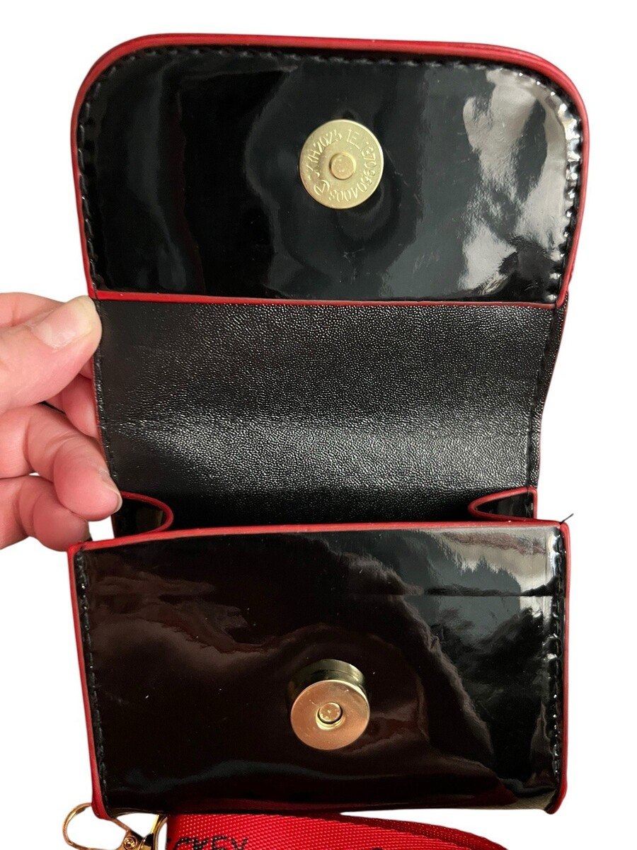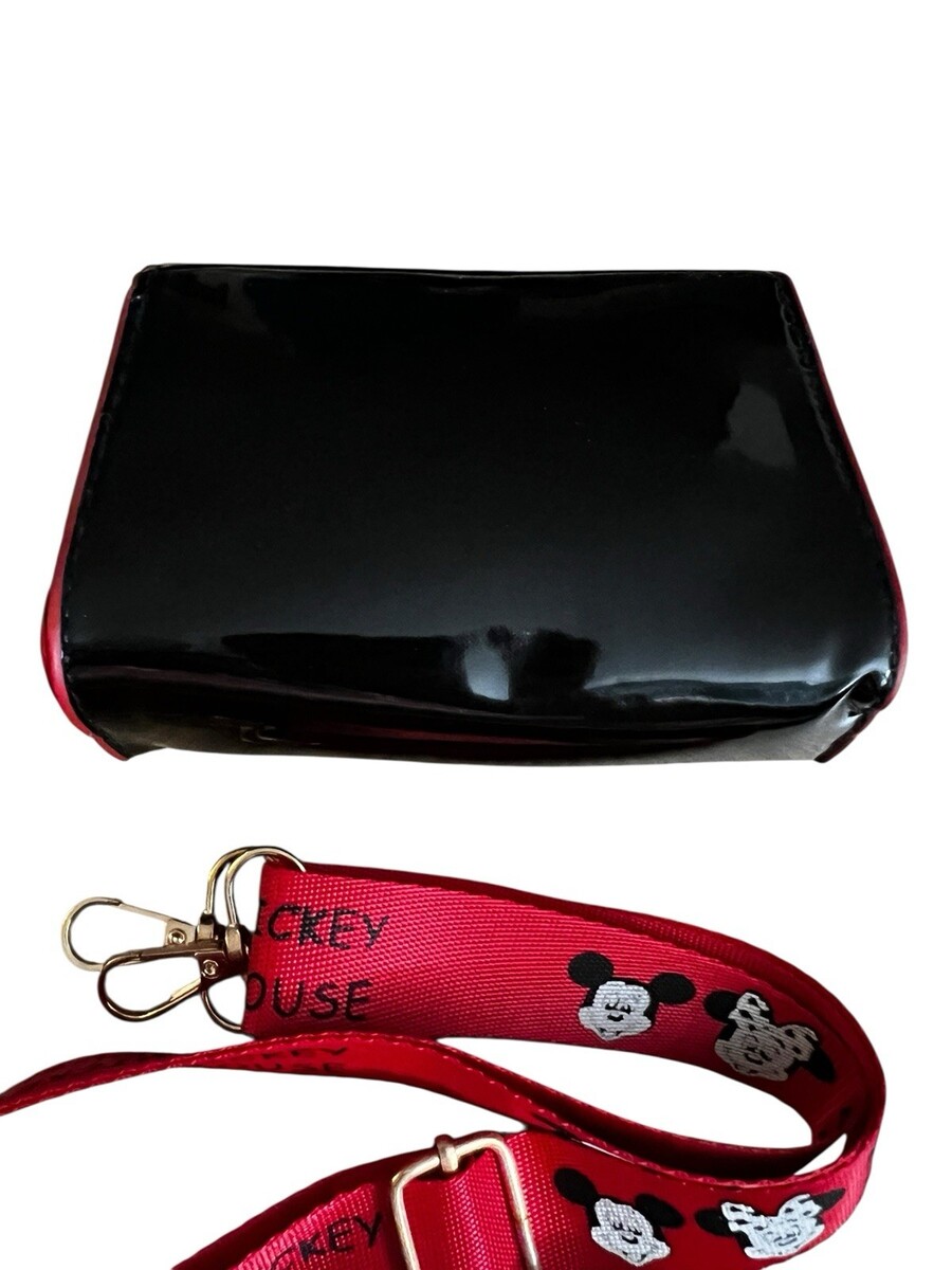 Disney Minnie Mouse Black Patent Leather Mini Crossbody Bag with Strap Red