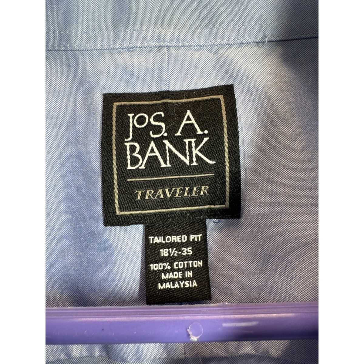 Jos A Banks Traveler Mens Cotton Blue Tailored Fit Dress Shirt Size 18.5 - 35