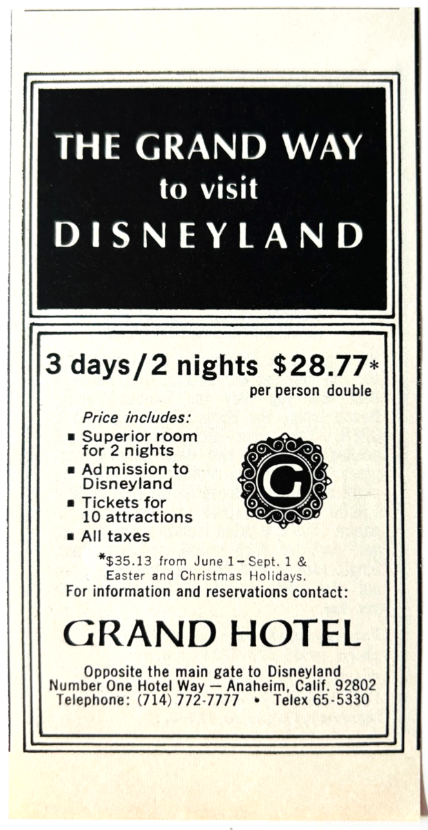 1972 Grand Hotel Disneyland Advertisement and similar items