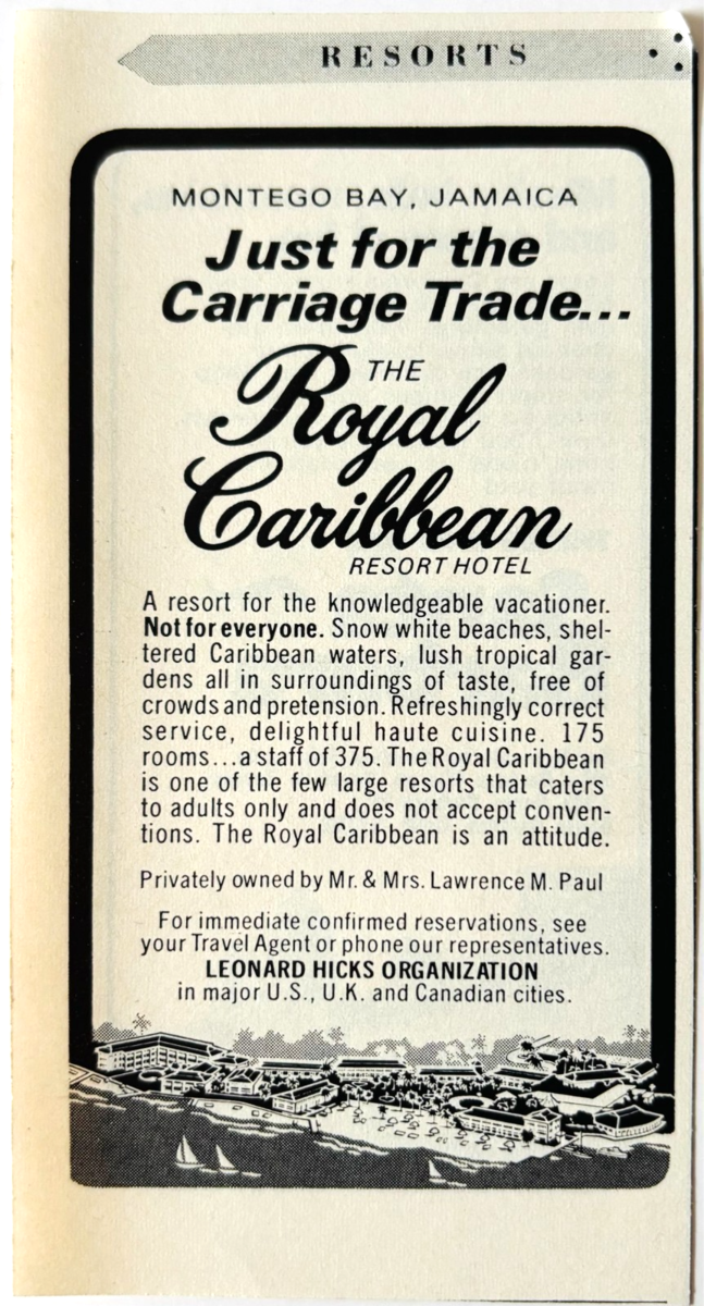 1972 Royal Caribbean Resort Hotel Advertisement Jamaica Montego Vintage F6J