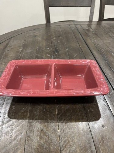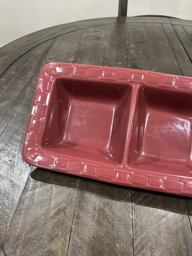 This beautiful Longaberger 181440 Paprika Pottery Woven Traditions Rectangle Divided Dish is a must-have for any collector or lover of art pottery. The dish is made of high-quality ceramic material and features a glossy finish.