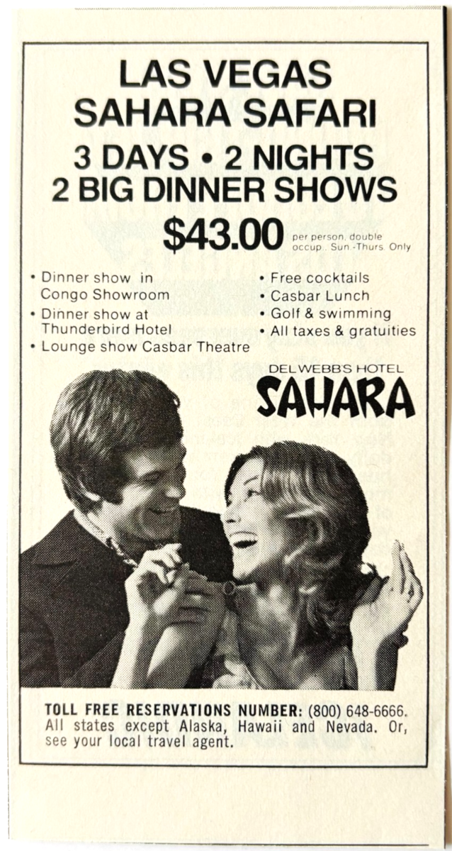 1972 Del Webb's Sahara Hotel Advertisement and similar items