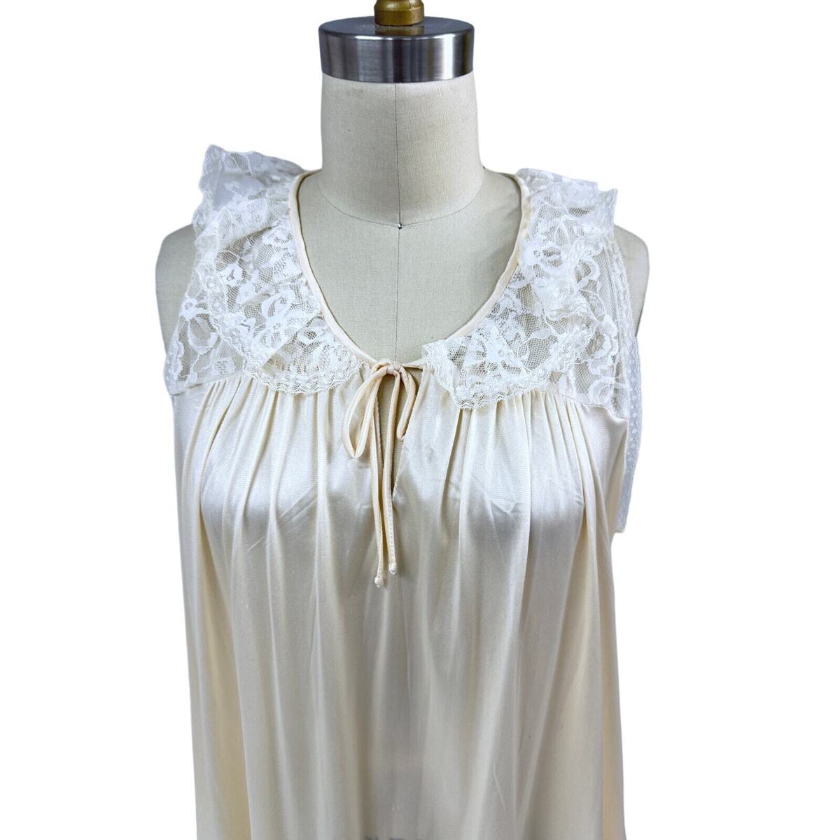 VTG 60s Odette Barsa Cream Nylon Nightgown Lace Trim/Collar Sz L NWOT