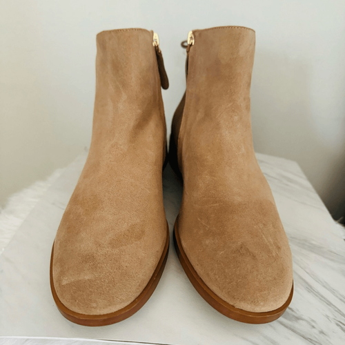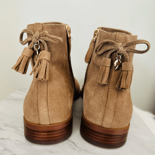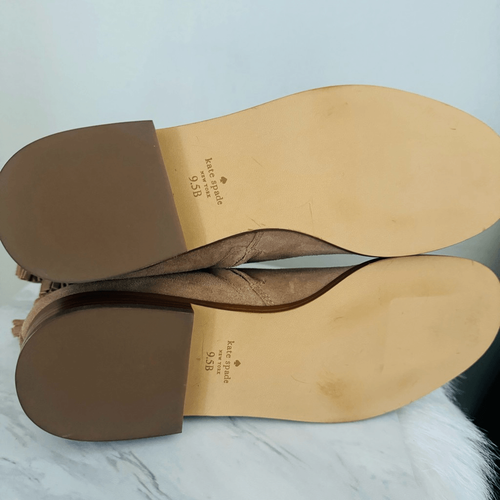 KATE SPADE Sadie Side Zip Tasseled Ankle Suede Boots, Almond, Size 9.5, NWOB