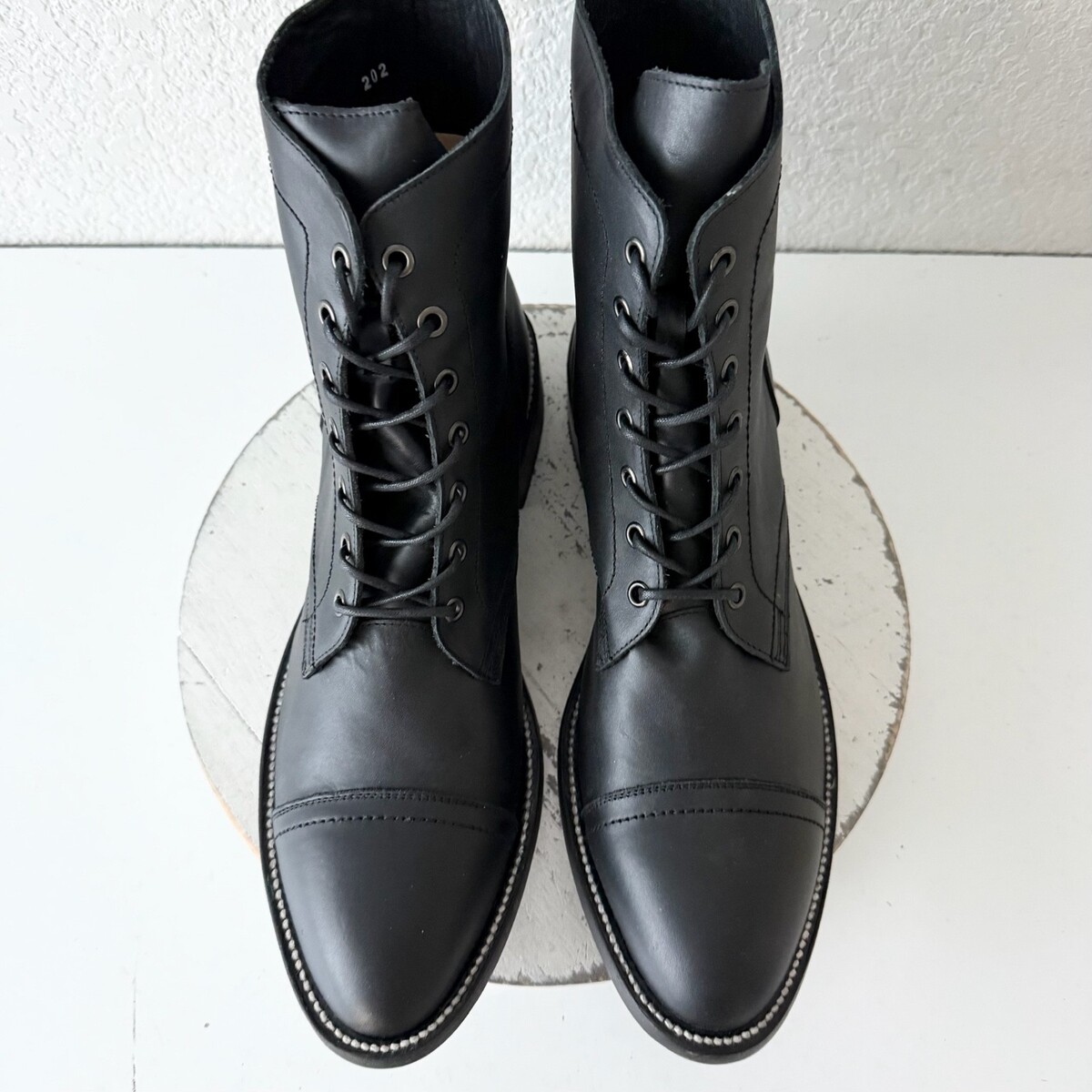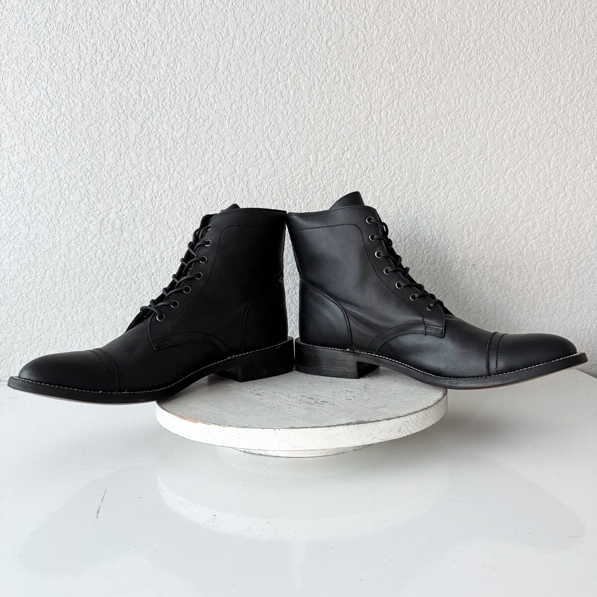 Lane Mens Lace-up Boots in Genuine Black Leather with a Cap Toe and Leather Soles