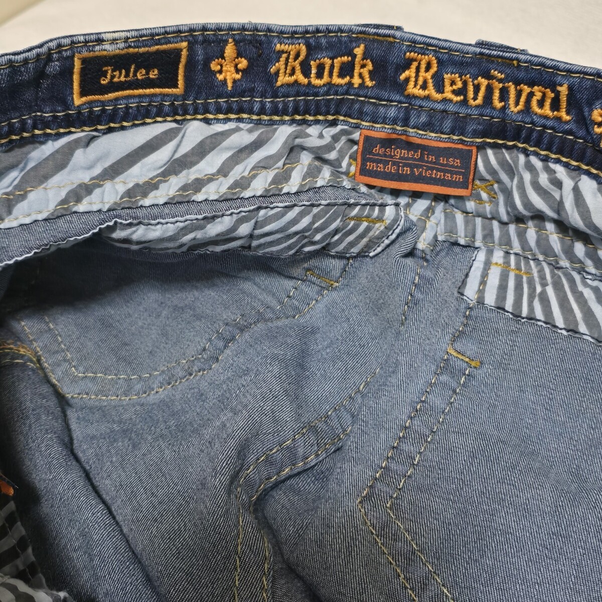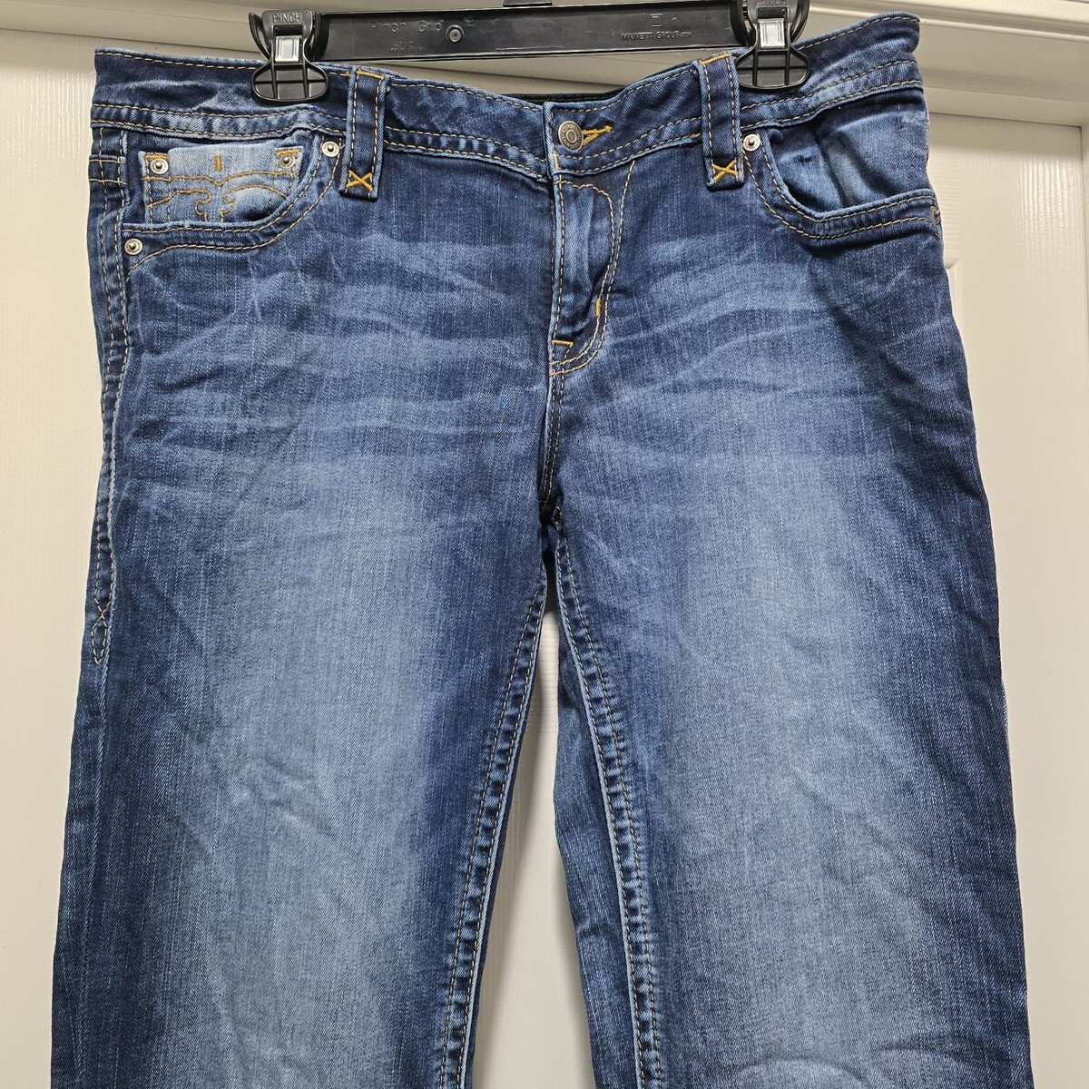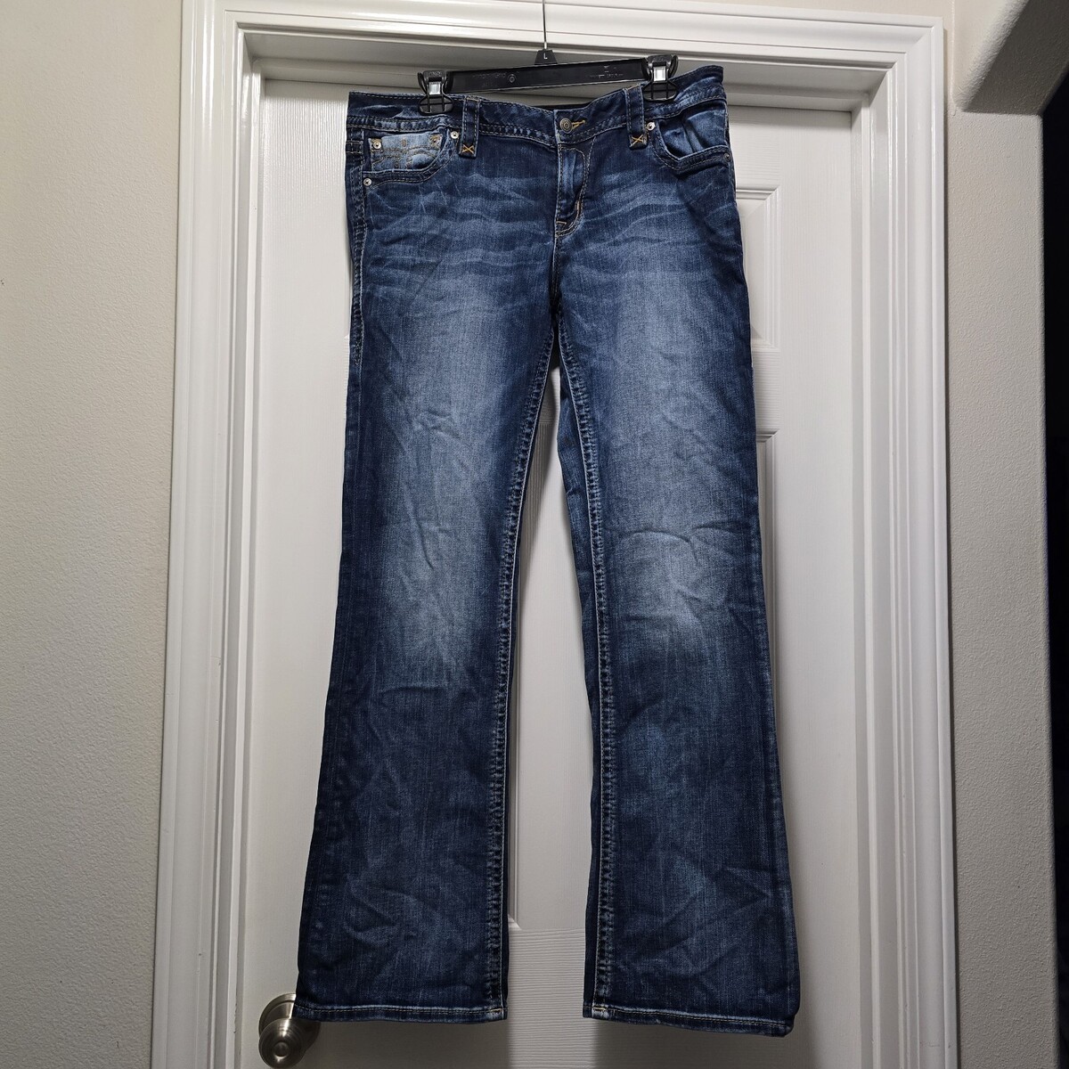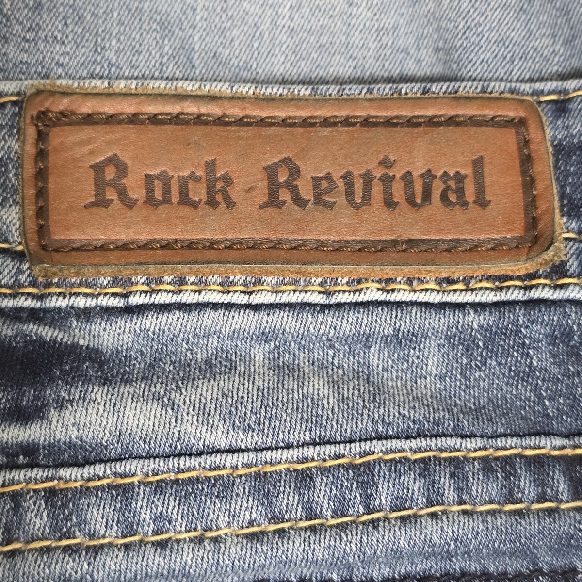 Like New Condition Rock Revival Julee Women's Tag Size 33 Bootcut Blue Jeans. Actual measurements: 36" waist, 33" inseam. These have actual faux flap back pockets.