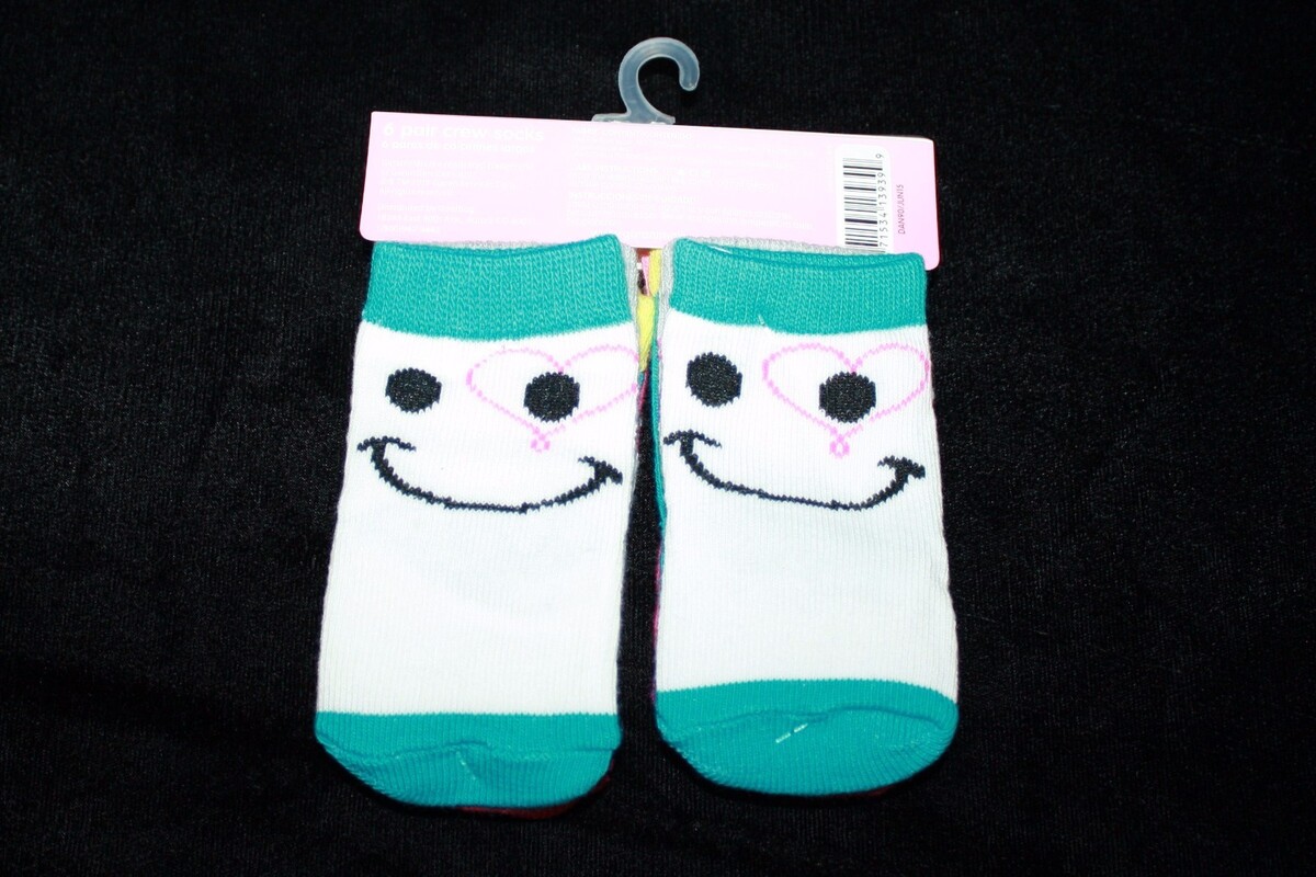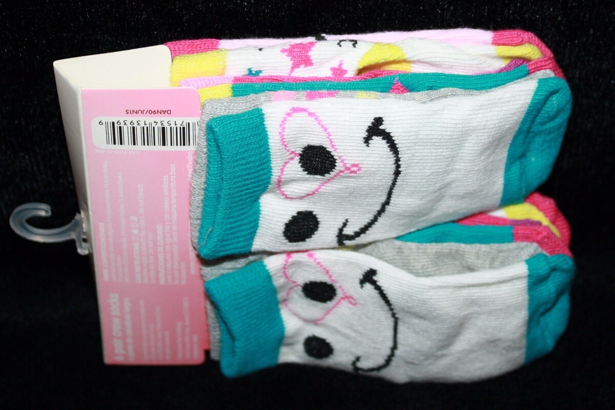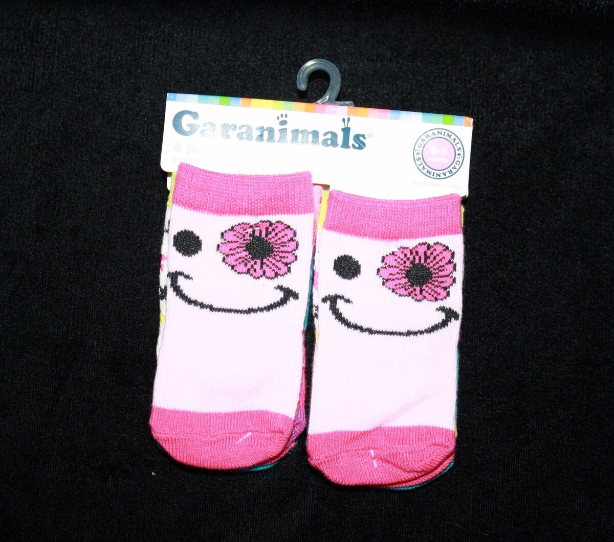 Garanimals Baby Girls Crew Socks 6 Pk 0-6 Months Smiley Face Pink Flowers Stars