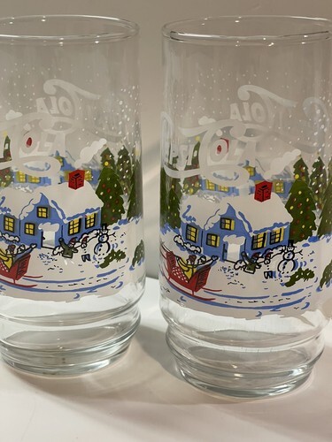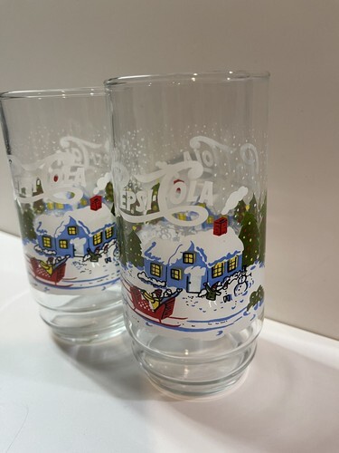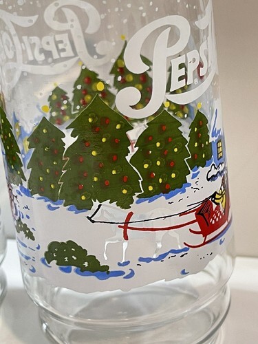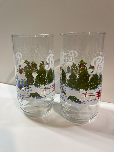 Vintage Pepsi Cola Christmas Sleigh Snow Scene 16oz Drinking Glasses Set of 2
