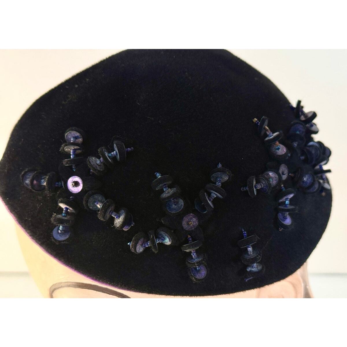 Hattie Carnegie 1950s Womens VTG hat Navy Blue Eclaire Wool Sequin Bead Baubles