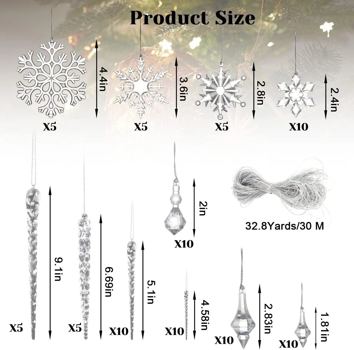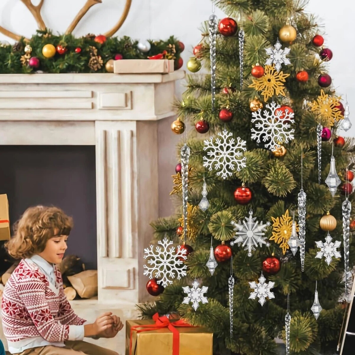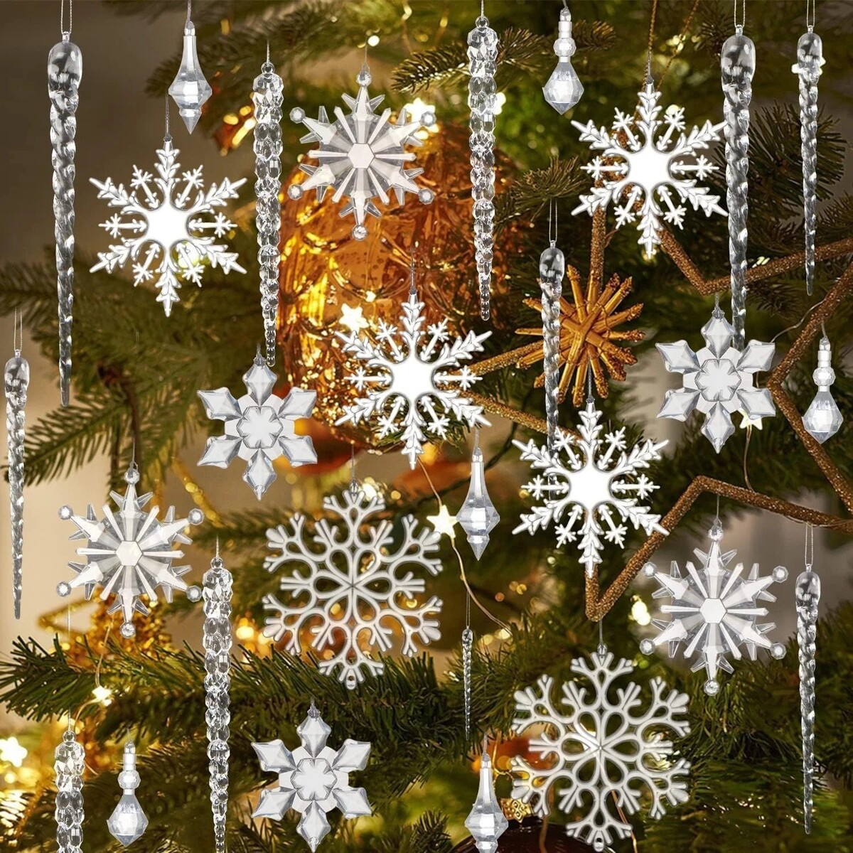 100PCS Christmas Decoration Acrylic Snowflake Tree Icicle Snowflake Decor