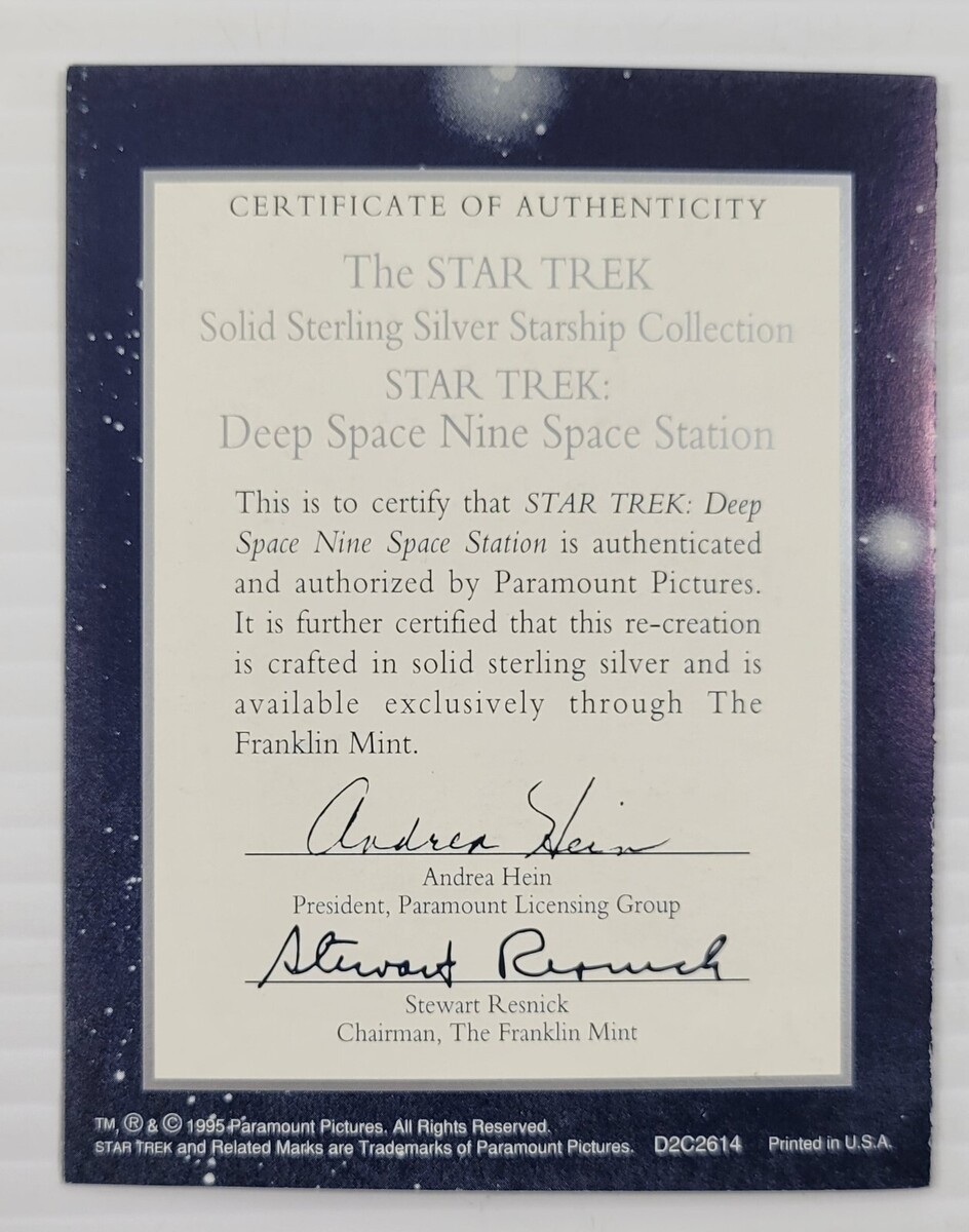 *C1) 1995 Franklin Mint Sterling Silver Starship Deep Space Booklet Certificate