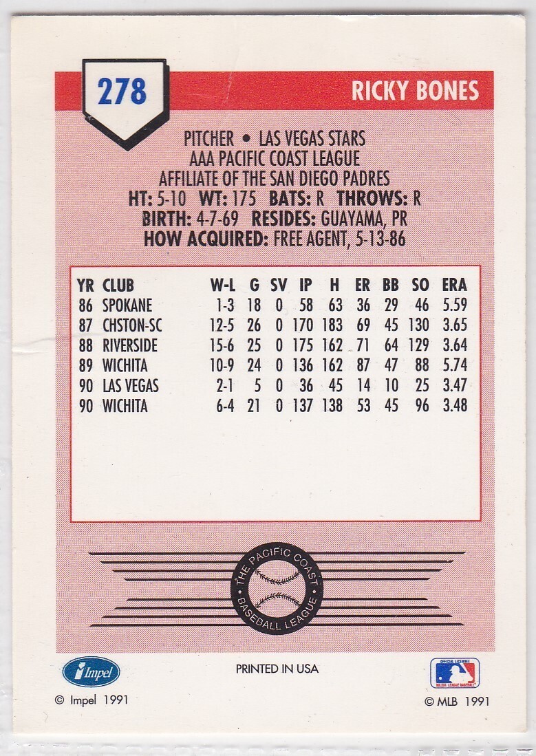 M) 1991 Impel Baseball Trading Card - Ricky Bones - #278