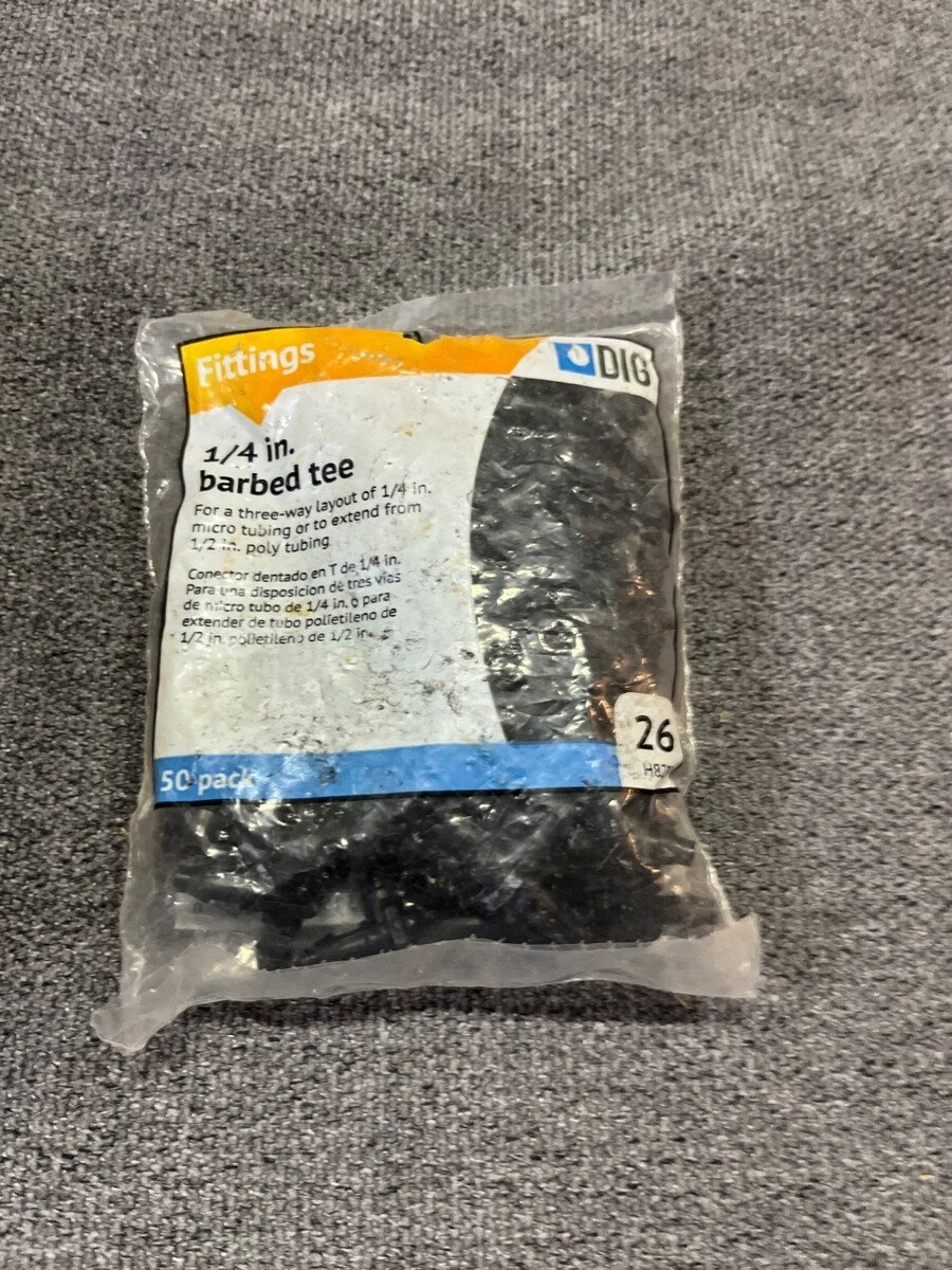Garden Lot NEW Vigoro Staples DIG 1/4” Barbed Tees + 100ft Vinyl Tubing