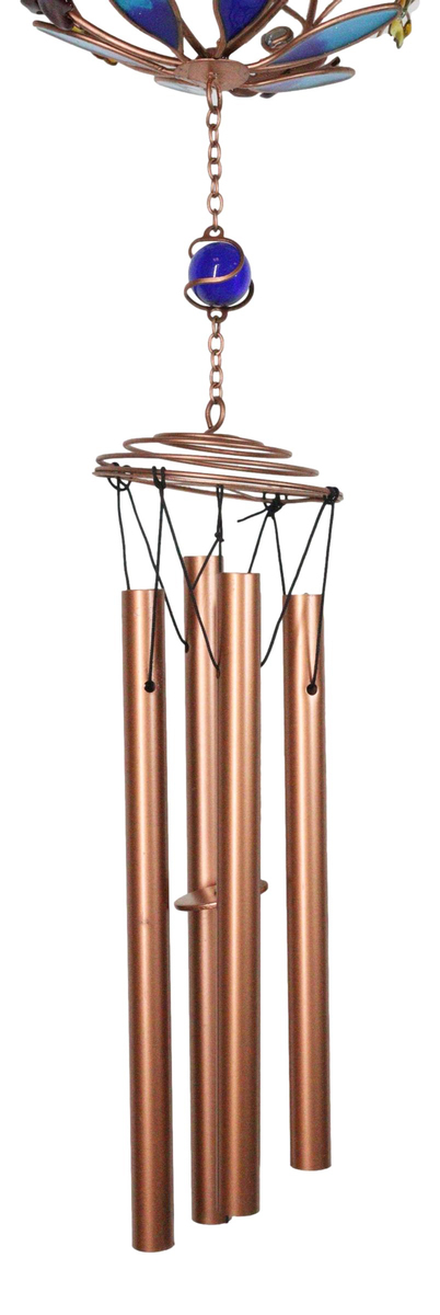 ? This Butterflies Wind Chime is made of Copper, Glass and Faux Gemstones/crystals. Color Tone May Vary from pictures.