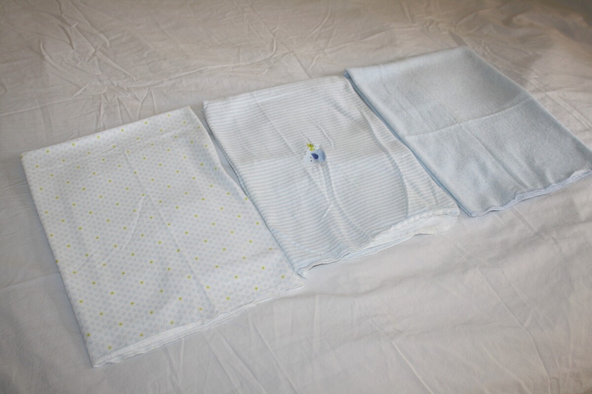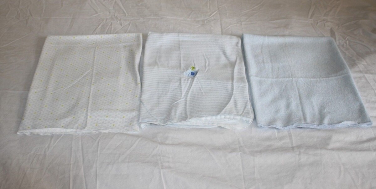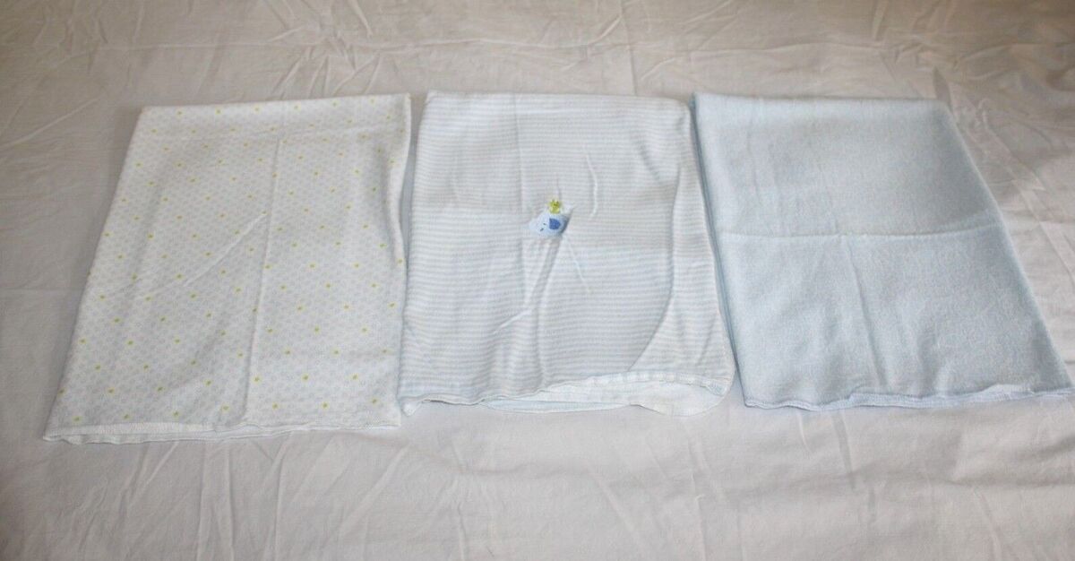 Condition: 3 Cotton flannel baby blankets with normal wash wear and some staining. One seam tag has writing on it. Makes a Great Back-up or Replacement if these are favorites. Smoke-free environment